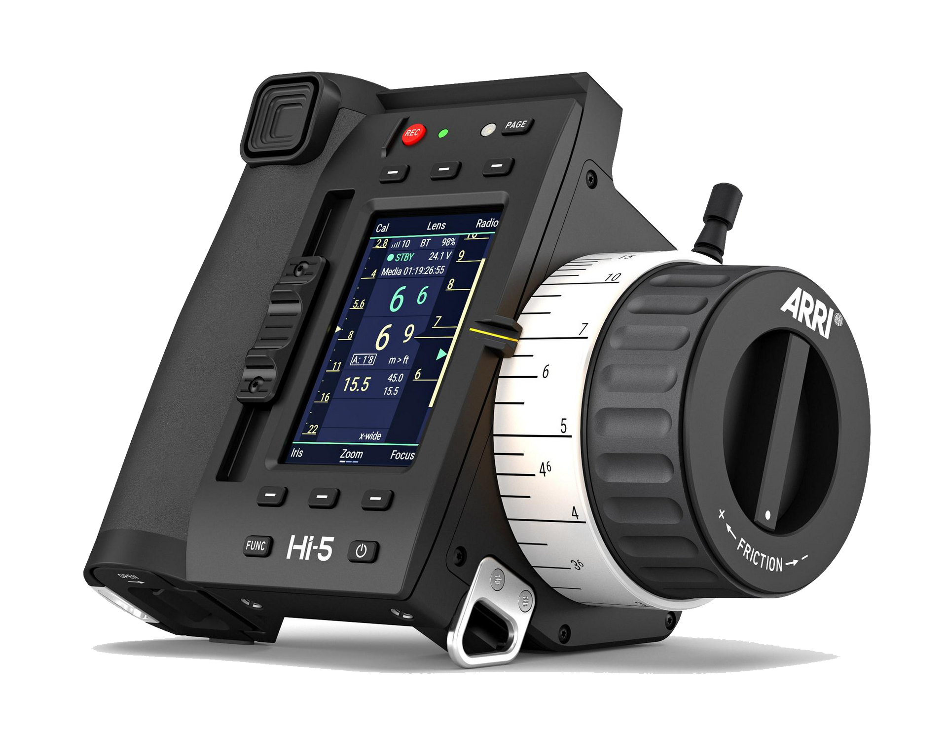 Wireless focus hand unit with remote control licenses for Arri, Sony Venice, and RED cameras. The Arri Hi5 can control iris, zoom, maps lenses and receive information from the CINE RT.